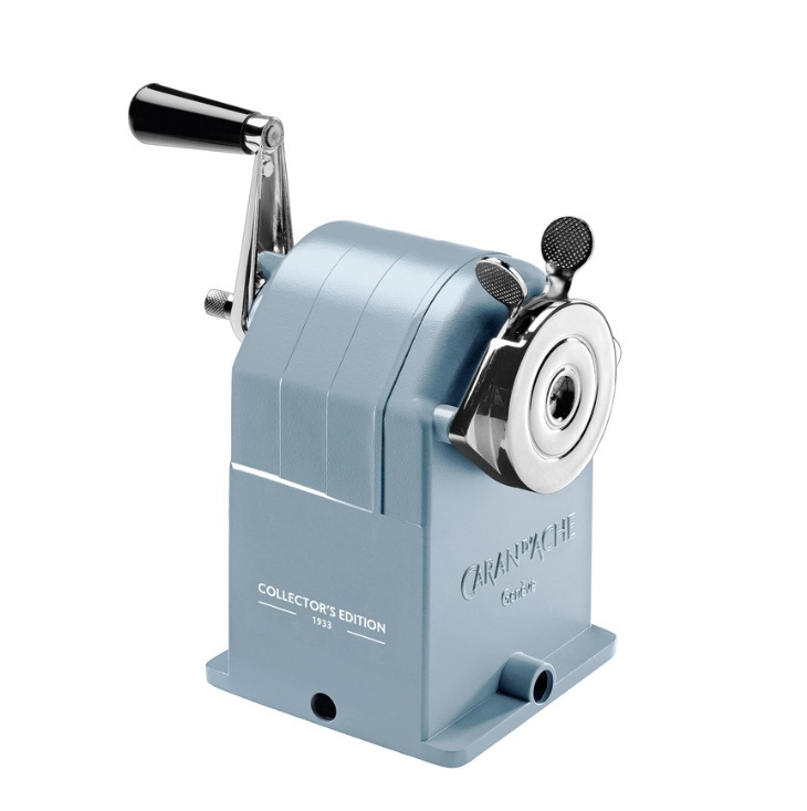 Kovové stolní ořezávátko Caran dAche Alpine Frost je ztělesněním švýcarské preciznosti a ikonického designu značky. Tato limitovaná edice v perleťově modré barvě s niklovanými detaily navazuje na estetiku kolekce Alpine Frost, inspirované leskem zimního ledu a čistotou alpské krajiny.