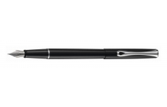 Velmi kvalitní štíhlé kovové plnicí pero Diplomat v černé lakové úpravě. Elegantně zaoblený klip a doplňky jsou pochromované. Hrot z nerezové ocele s jemným rytým vzorem zaručuje výbornou kvalitu psaní. Víčko je nasazovací. Pero je vybavené systémem na bombičky i na plnění konvertorem (není součástí balení). Dodáváno v dárkové krabičce.