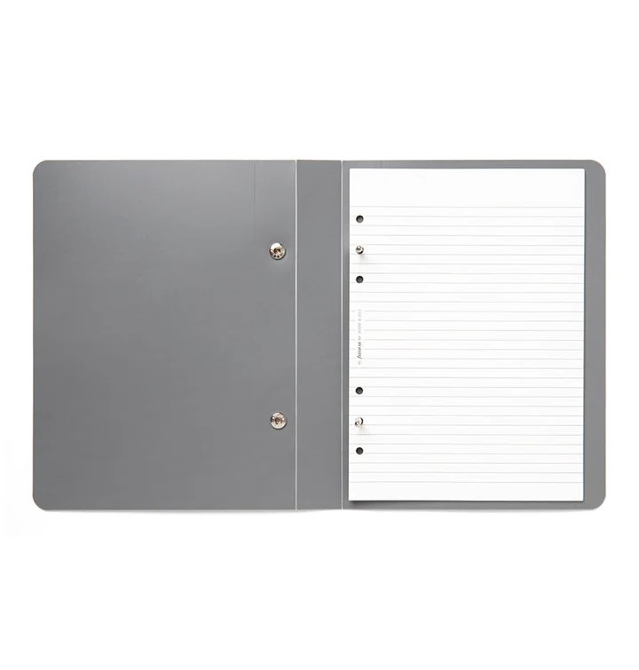 Šedé plastové archivní desky na diářové náplně Filofax a Clipbook velikosti A5. Díky mechanismu cvočků si můžete uložit až 200 listů papíru o gramáži 80 g/m2. Na hřbetu desek je štítek pro rychlejší vyhledávání. Pořadač neobsahuje kroužky! Parametry: výška 222 mm x šířka: 167 mm x hloubka: 30 mm. Vyrobeno v Číně.