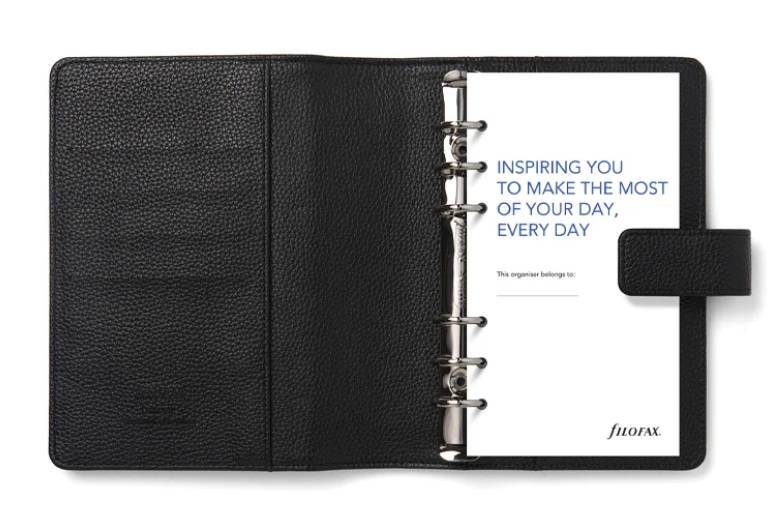 Filofax Camden osobní černý (195 × 175 mm) je diář s výměnnou kroužkovou vazbou, recyklovaným papírem a promyšlenými vnitřními kapsami, který nabízí kombinaci udržitelnosti a každodenní funkčnosti. Vhodný pro každého, kdo hledá stylové plánování bez kompromisů.