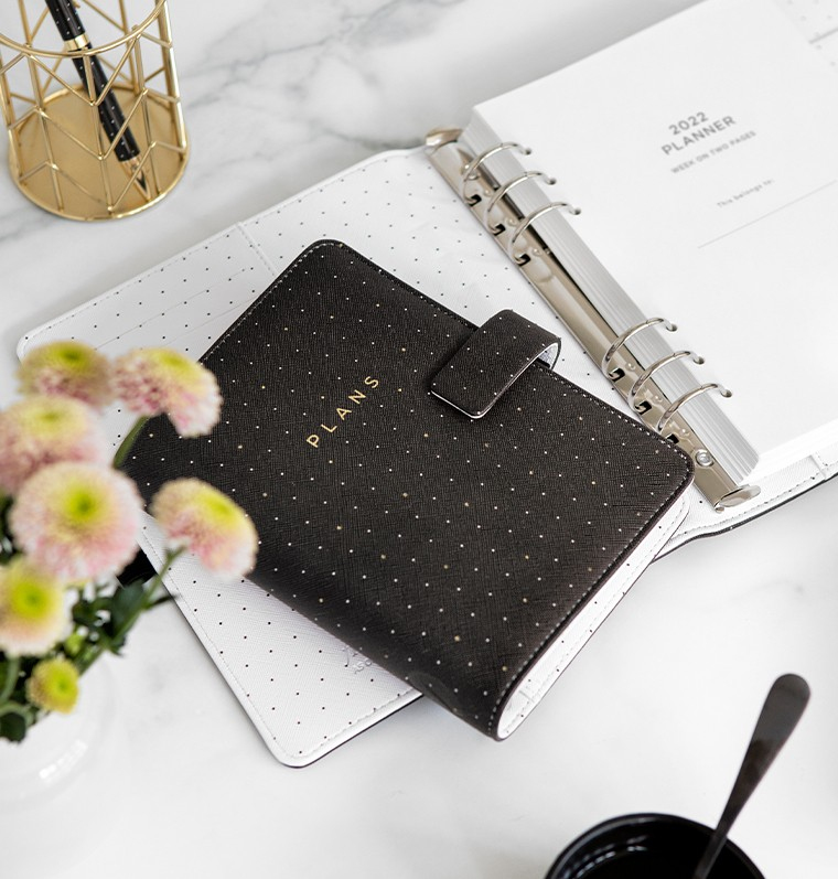 Diář Filofax z kolekce Moonlight v černém provedení vyniká kontrastní barvou vnější a vnitřní strany desek a jemným vzorem přípomínající hvězdnou oblohu. Desky jsou vyrobeny ze syntetického materiálu s jemnou strukturou koženého vzhledu s detaily ze zlaté fólie. Velikost náplně Pocket - formát papíru 80 x 120 mm. Diář je standardně naplněn českým a slovenským kalendářem na celý rok 2026.