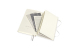 Zápisník Moleskine pro plánování svatby. S šitou vazbou a s pevnými deskami v bílé barvě s reliéfním zdobením. Obepíná ho pružná bílá páska proti samovolnému otevírání. Zápisník je vybaven 2 textilními záložkami, dvojitou vnitřní kapsou a barevnými samolepkami.