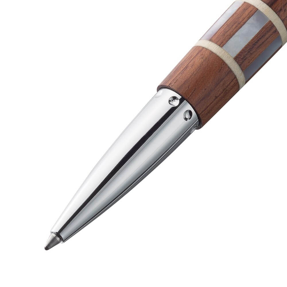 Rose´n Pearls - to je rafinované palisandrové dřevo, dílky z perlorodky Pinctada Maxima a kroužky z javorového dřeva - tři cenné poklady přírody. Vše je skloubeno do citlivé souhry. Z tohoto pera, které oslní i ty nejnáročnější, je cítit charisma, teplo a pocit, že jen příroda umí vytvořit nejrafinovanější klenoty.