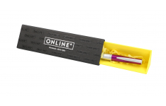 Moderní plnicí pero Online Squeeze má hliníkové tělo v matném provedení a víčko ve filalové barvě. Víčko je nasazovací a má originální zakřivení typické pro tuto řadu. Hliníkový klip je také matný. Pouze hrot M. Součástí balení bombička. Dodáváno v papírové trojúhelníkové krabičce.