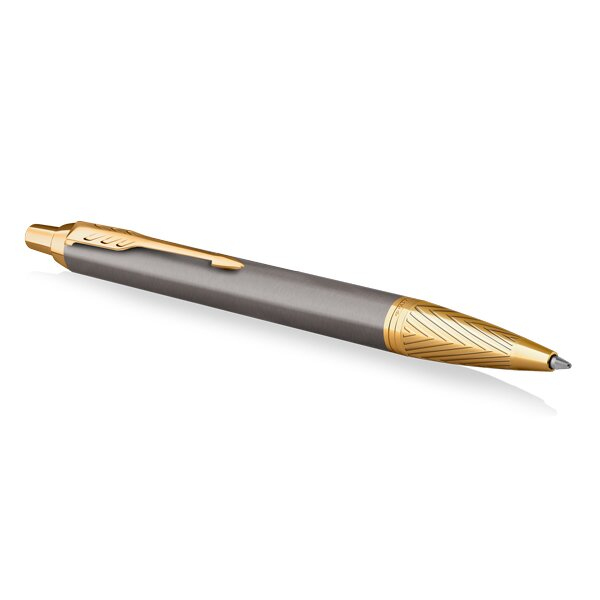 Kuličkové pero Parker Royal I.M. Premium Arrow GT má kovové tělo pokryté lesklým šedým lakem. Úchopová část má zdobnou rytinu se vzorem "šípu" vytvořeným leptáním a je pokovená 23karátovým zlatem. Doplňky jsou pozlacené pomocí techniky PVD. Stiskací mechanismus pro vysunutí velkokapacitní náplně (součástí jedna náplň). Dodáváno s černým pouzdrem a voucherem na kurz Akademie psaní v elegantní dárkové krabičce.