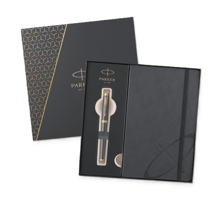 Plnicí pero Parker I.M. Core Grey GT má šedě lakované nerezové tělo a víčko. Doplňky jsou pokovené zlatem. Hrot z nerezové ocele je zdobený rytinou. Víčko je nasazovací. Úchopová část z černého plastu. Pero je vybavené systémem na bombičky i na plnění konvertorem. Součástí balení bombička, konvertor je možné v případě zájmu přikoupit. Dodáváno se zápisníkem a voucherem Akademie psaní v elegantní dárkové krabičce Parker.