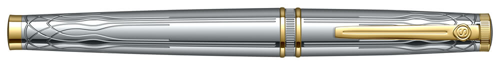 Masivní plnicí pero Scrikss Heritage Chrome Gold v časově limitované edici vydané k příležitosti 50. let značky Scrikss, což je turecká značka specializující se na výrobu luxusních psacích potřeb a doplňků. Kovové tělo pera je pochromované. Klip a doplňky jsou pozlacené 23 karátovým zlatem. Prvotřídní hrot šířky M (střední) je vyrobený z nerezové ocele a je také častečně pozlacený. Víčko je šroubovací. Perfektní vyvážení pro pohodlný pocit při psaní.