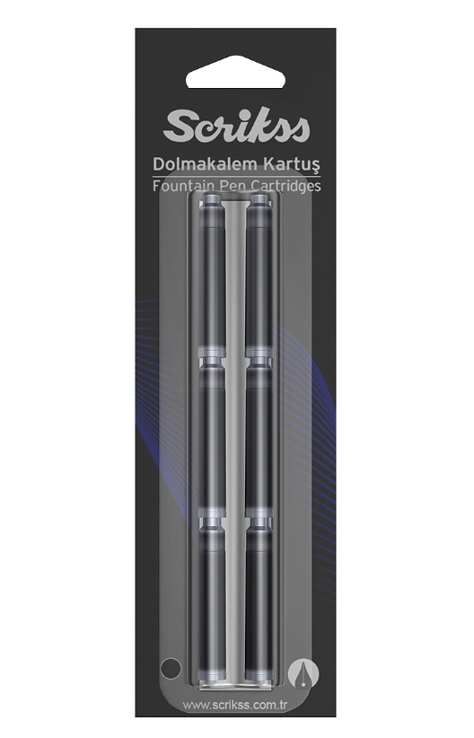 Standardní inkoustové bombičky turecké značky Scrikss, která se specializuje na výrobu luxusních psacích potřeb a doplňků. Její historie sahá až k roku 1963. Bombičky pasují do většiny plnicích per. V ceně balení je 6 ks bombiček. Dvě možné barvy inkoustu: modrá a černá.