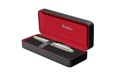 Elegantní plnicí pero Scrikss Noble s mosazným tělem i víčkem s titanovou povrchovou úpravou a s výrazným červeným kroužkem. Jeho lineární forma a vyvážené tělo nabízí vynikající pohodlí pro dlouhé psaní. Hrot s iridiovou špičkou je vyrobený z leštěné nerezové ocele. Víčko je nasazovací. Pero je vybavené systémem na bombičky i na plnění konvertorem. Součástí balení je konvertor a modré bombičky. Dodáváno v dárkové krabičce.