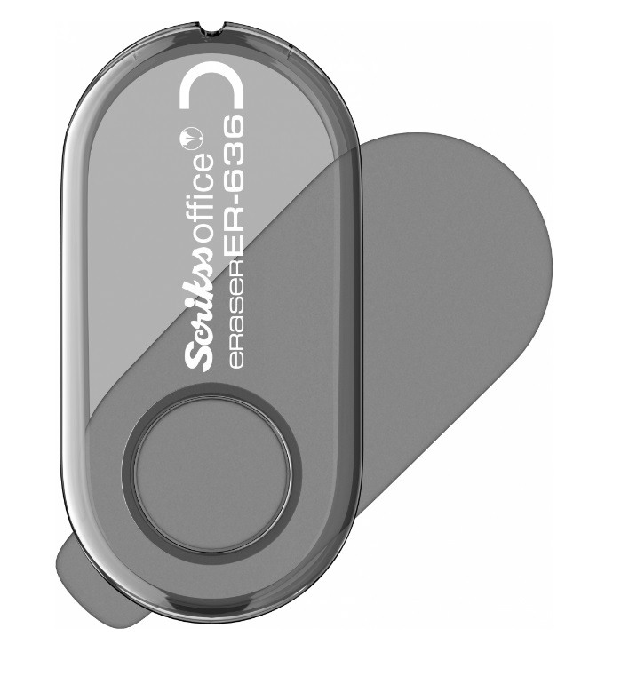Praktická vysunovací pryž na gumování Scrikks v průhledném plastovém pouzdře. Šedá barva. Hmotnost 30 g.