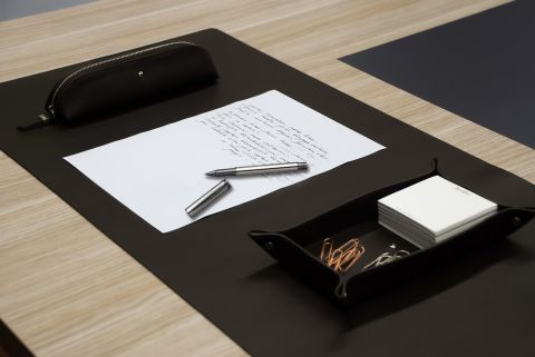 Stolní set Scrikss spojuje doplňky z pravé kůže a elegantní roller do promyšleného pracovního celku, který ocení každý, kdo chce mít na stole pořádek, dobrý přehled a reprezentativní prostor pro psaní i každodenní organizaci.