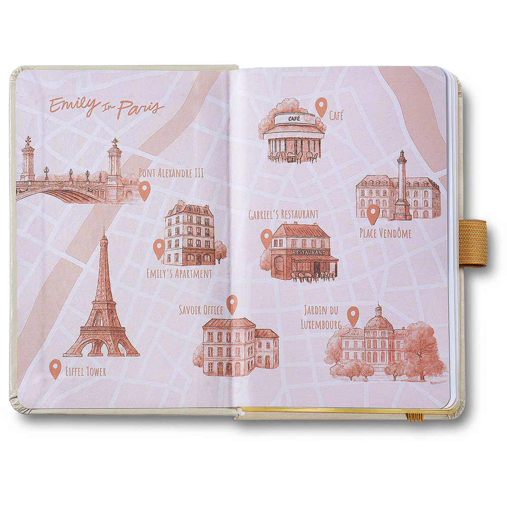 Zápisník ve velikosti A6 je jako deník s francouzským akcentem. Pevná vazba, hladké stránky a decentní Eiffelovka na obálce vám každý den připomenou, že i běžné poznámky mohou vypadat výjimečně. Uvnitř čeká 144 stran kvalitního papíru (90 g/m²), co snese i výraznější tahy a nepropíjí. Zlatý okraj, dvojité záložky, gumička, poutko na pero, vnitřní kapsa – každý detail má své místo a dává smysl. A navrch? Samolepky a kartička, co potěší každou romantickou duši.