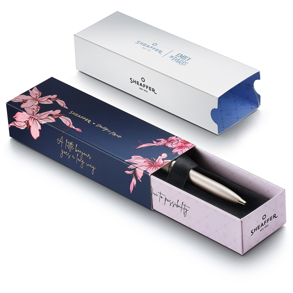 Emily vtrhla do Paříže se šarmem, nadhledem a citem pro styl – a přesně to přináší i nová kolekce per Sheaffer Emily in Paris. Vdechněte svým slovům francouzskou eleganci a lehkost Říma, Paříže či Benátek. Objevte spojení módy, moderní elegance a psací tradice. S těmito pery bude každý podpis malým momentem glamour.