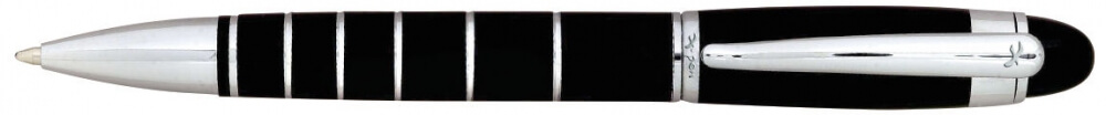Kuličkové pero X-Pen s mosazným tělem s černou povrchovou úpravou s kontrastními pochromovanými kroužky, které dotváří celkový dojem z tohoto velmi povedeného modelu. Doplňky a klip jsou také pochromované. Otočný mechanismus pro vysunutí velkokapacitní náplně (standardní evropský typ). Dodáváno v luxusní dárkové krabičce.